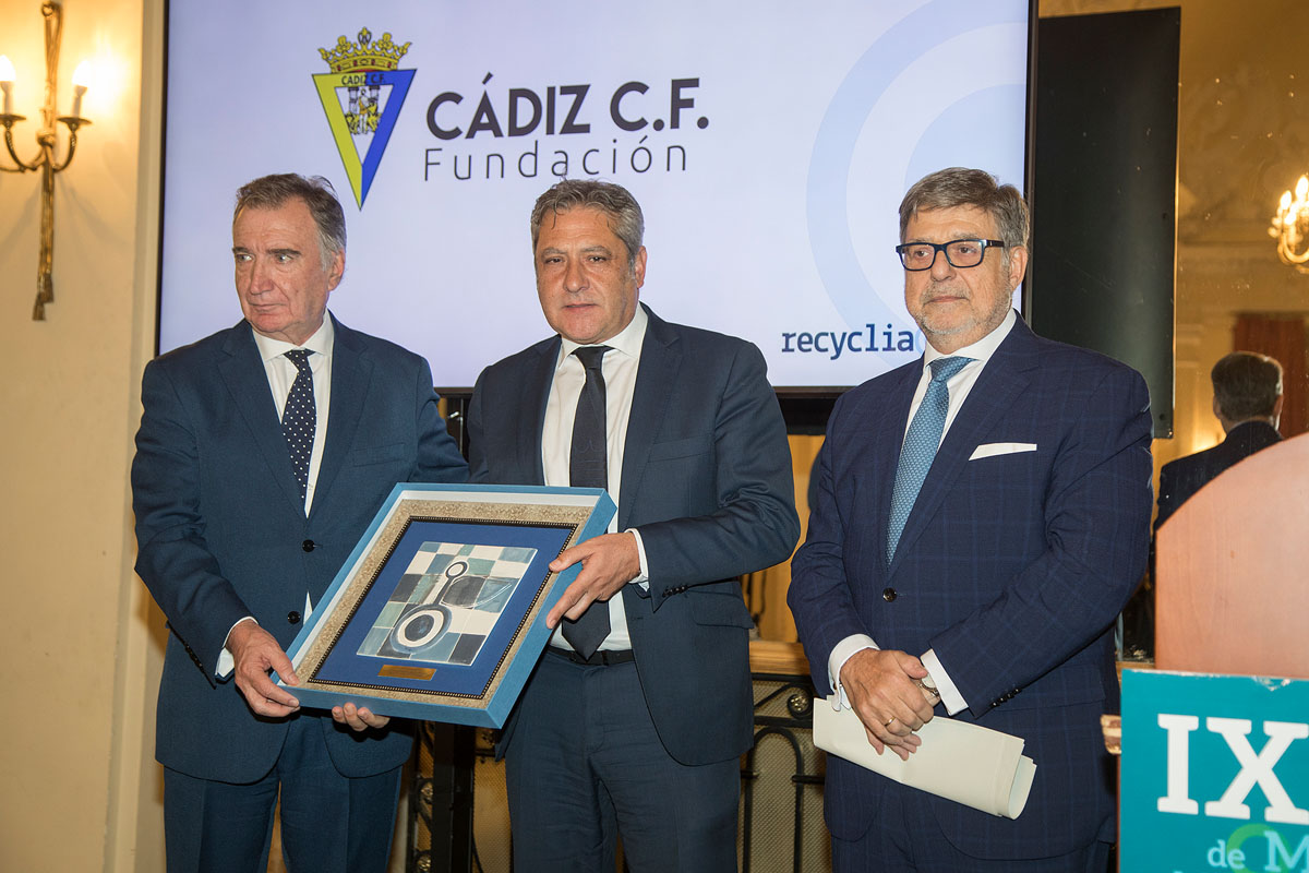 Pepe Mata, gerente de Cádiz CF Fundación, recogió el Premio Recyclia en la categoría ‘Apoyo de una Entidad Pública o Privada al Fomento del Reciclaje’ en reconocimiento al compromiso de la Fundación del club deportivo con la preservación de los ecosistemas costeros de la provincia mediante diversas iniciativas de sensibilización.