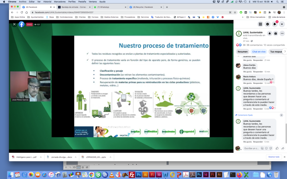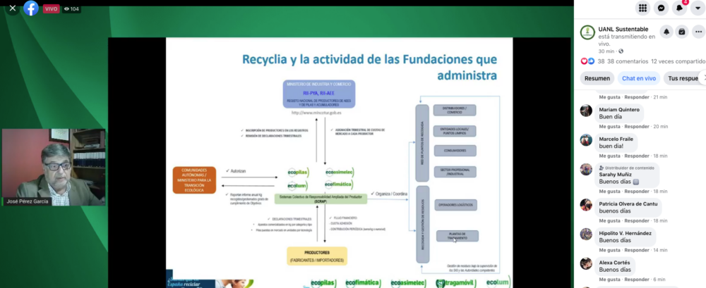 La conferencia titulada el «El reciclaje de equipos electrónicos en España y Europa. Normativa, experiencia práctica y modelos de gestión» pudo seguirse por el Facebook Live de la a plataforma «UANL Sustentable» de la Universidad Autónoma de Nuevo León, en el estado de Monterrey, UANL Sustentable y aún puede consultarse en el siguiente enlace.